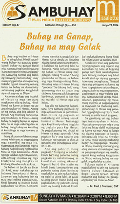 Notes: Sambuhay is a religious pamphlet used as a missalette during Sunday service. It includes the Gospel reading for the week, and also functions as a guide on how to follow the service through the inclusion of responsorial psalms, prayers, and song lyrics.