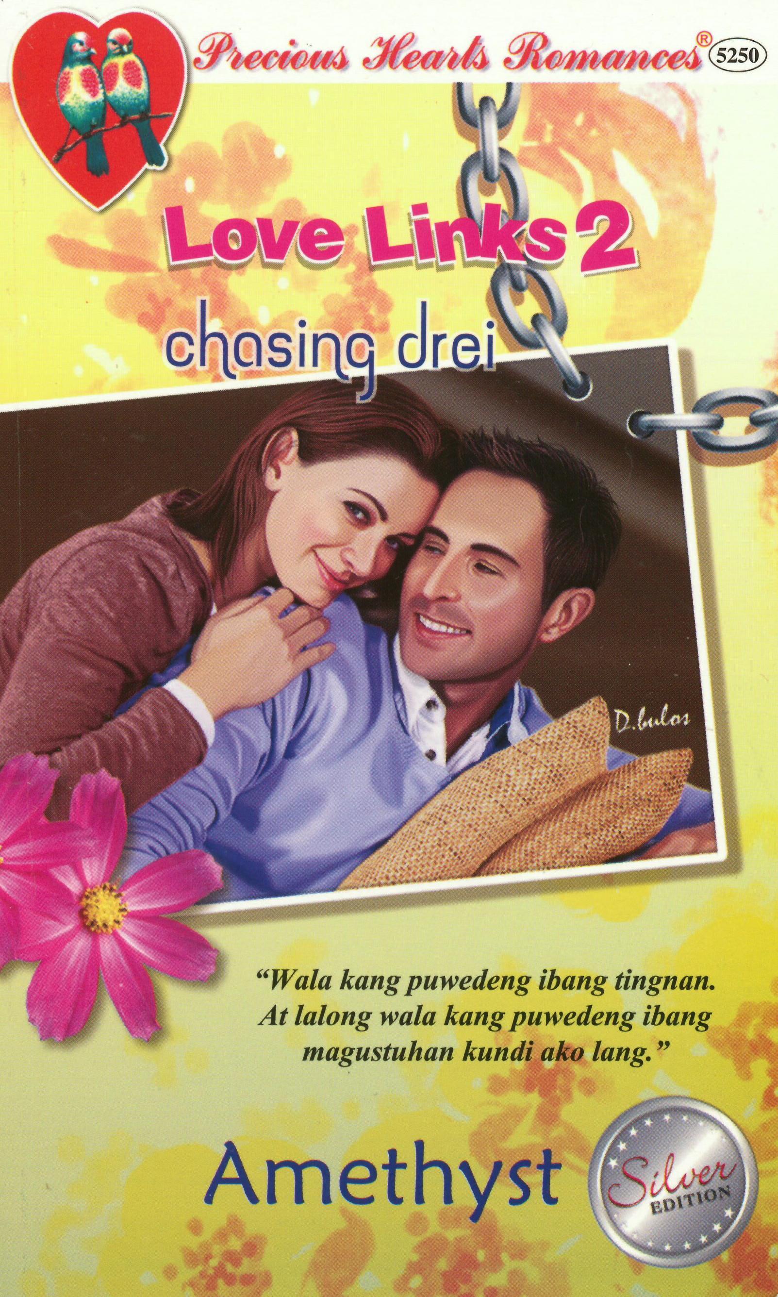 Notes: Chasing Drei is the second book published under the Love Links series of Precious Pages Corporation. It tells the story of Melody, a teenage girl who is in love with Andrei, a rising star and celebrity who is managed by her sibling. The conflict arises when Andrei becomes too popular, and Melody feels threatened by his celebrity status, fearing that it is taking him away from her.