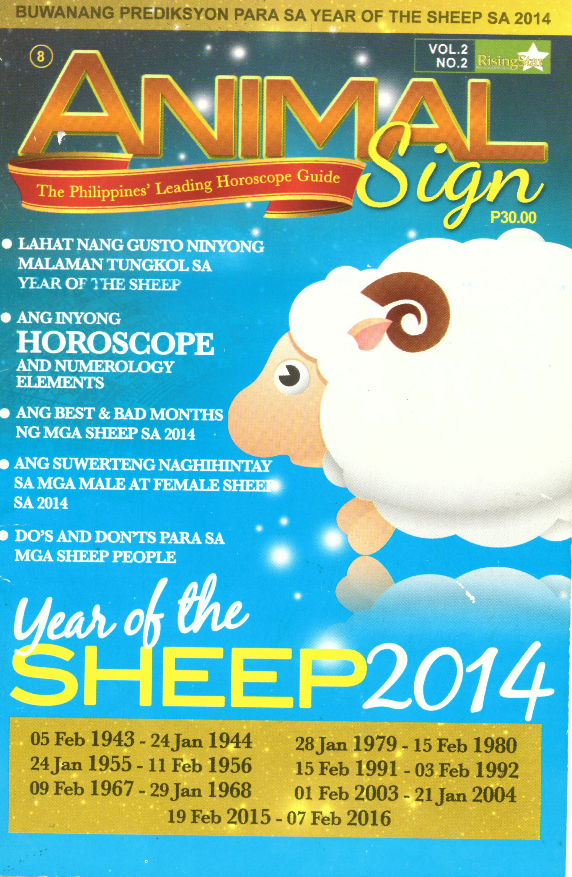Notes: The magazine provides astrological advice for the year 2014 for those born under the Chinese zodiac sign of the Sheep.