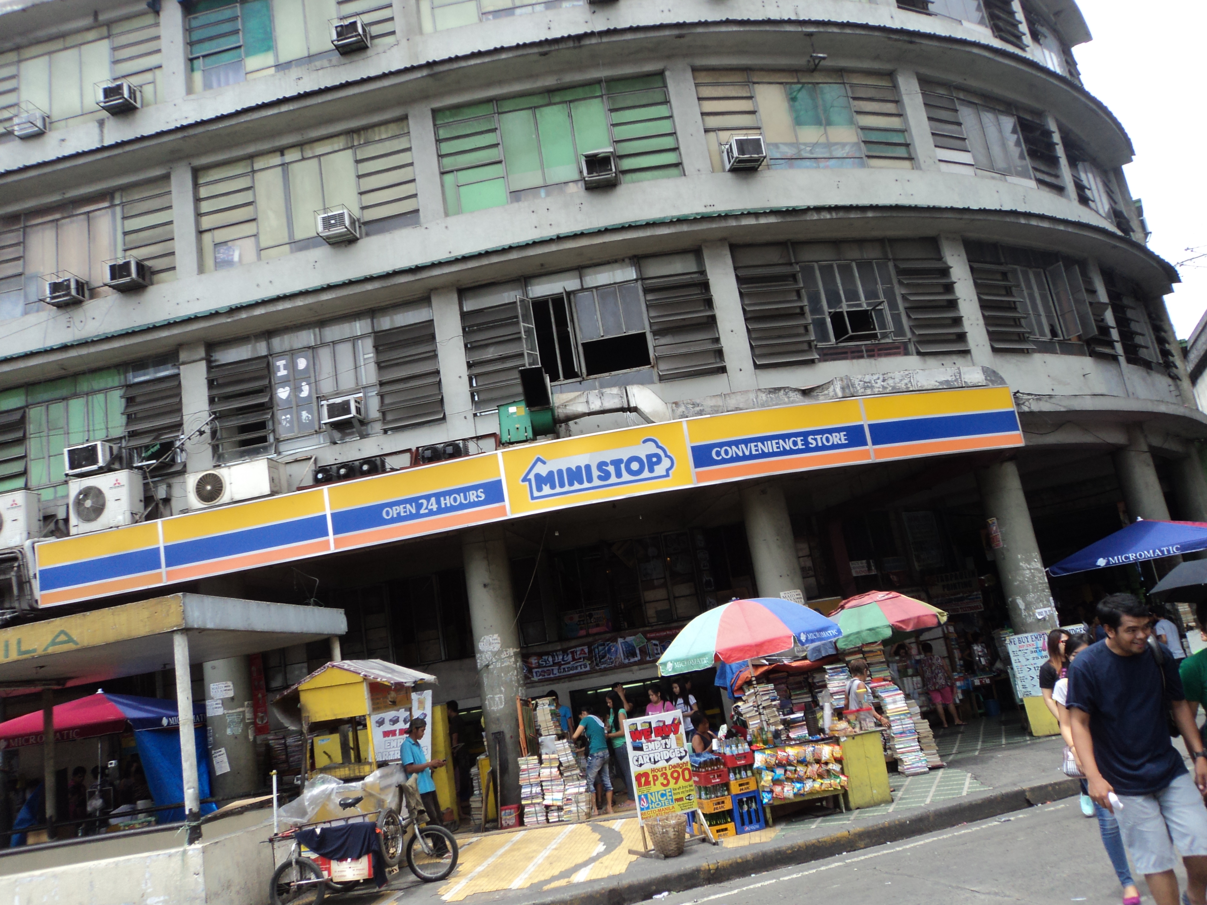 A sidewalk stall that sells tabloids and snacks along Claro M. Recto Avenue, an important commercial artery in north central Manila. There are numerous universities and schools along Recto, which has created a thriving market for school-related businesses, as seen in the stacks of used textbooks for sale in the background.