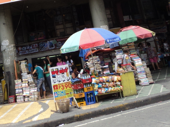 A close-up of the same stand. These stalls sometimes carry standing signs, such as this one for buying empty ink cartridges. A lot of these signs are sponsored by the numerous love motels all over the metro, and so double as spaces for advertisement for their rates.