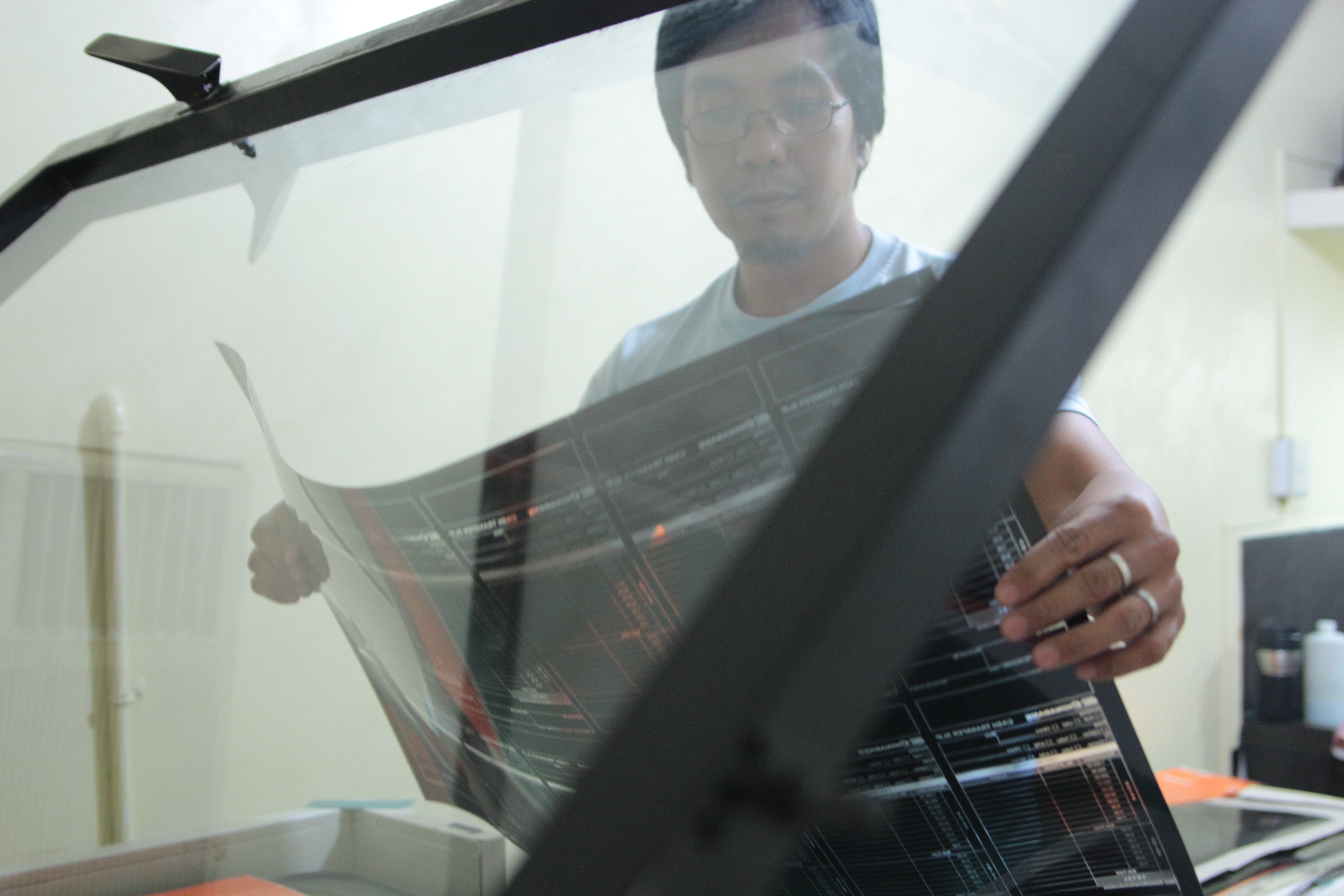 One of the Visprint employees showing us how to create a publication proof.